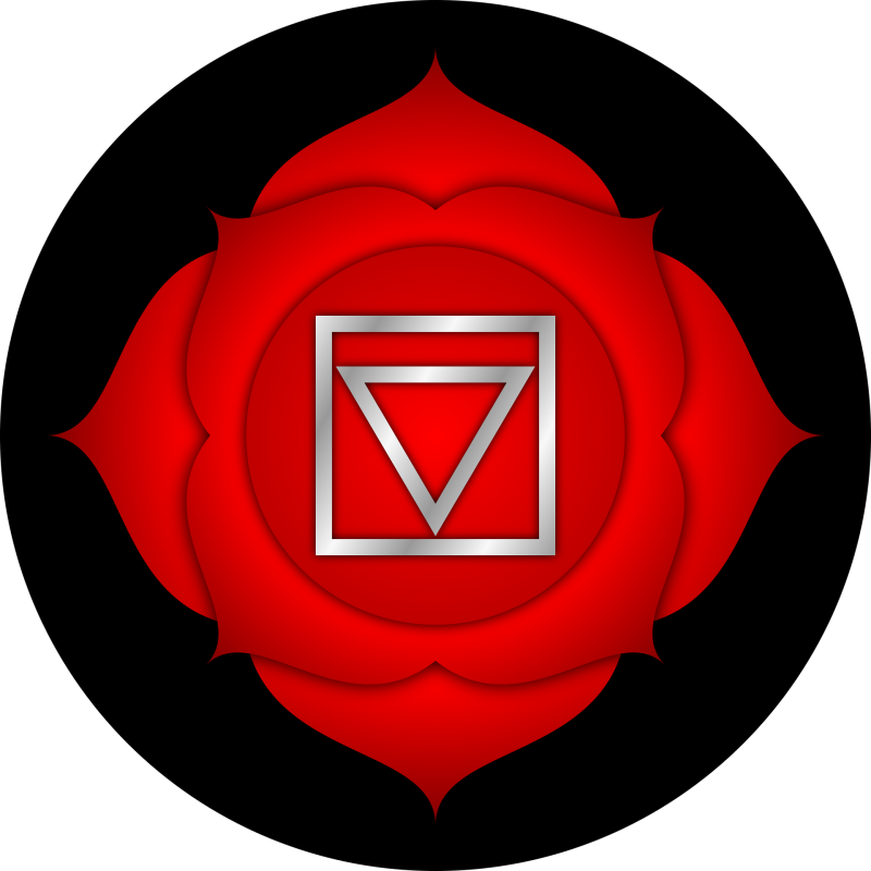 Zit bij je stuitje en gaat o.a. over je aarding, lichamelijke gezondheid, vitale levenskracht, levenswil, doorzettingskracht, overvloed in materie, warmte en geborgenheid.